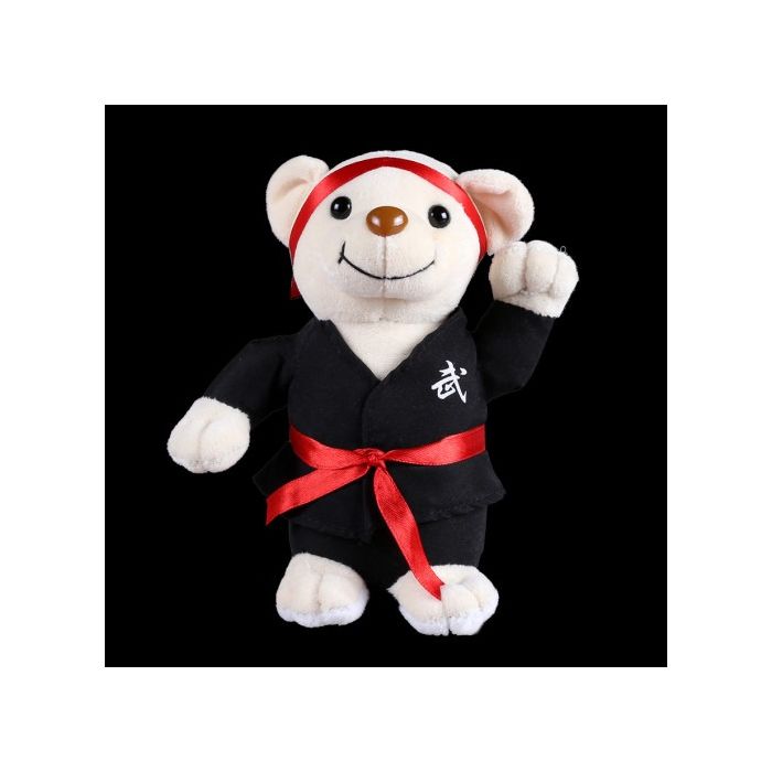 6.5" Plush White Bear with martial arts black uniform.